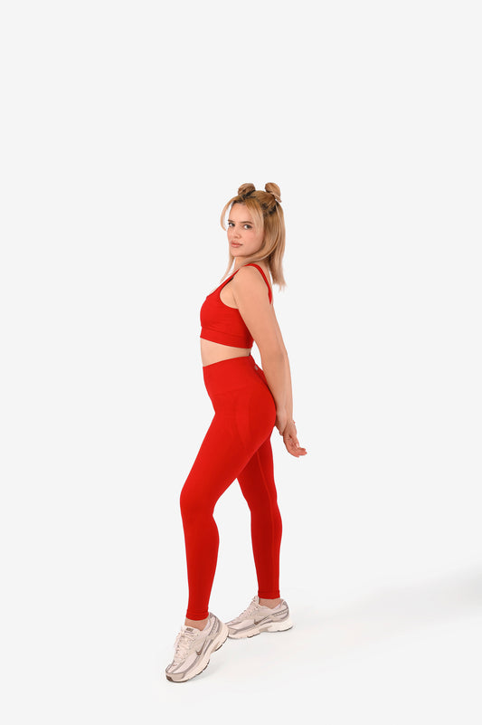 Yüksel Bel Dikişsiz ve Büzgüsüz Kalça Toparlayıcı Spor Tayt Kırmızı